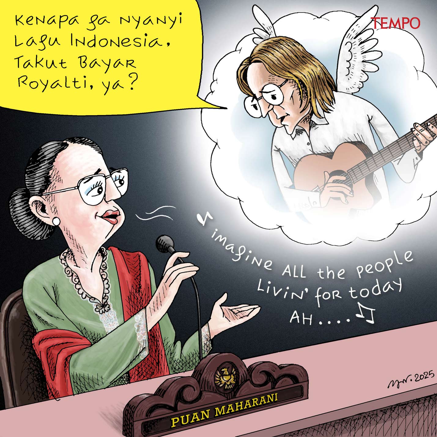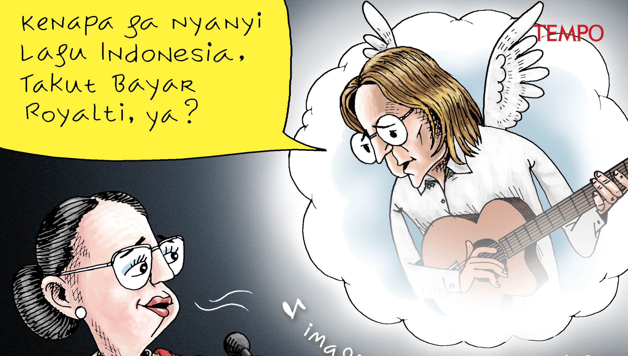 *Why don’t you sing an Indonesian song, afraid of paying royalties, are you?